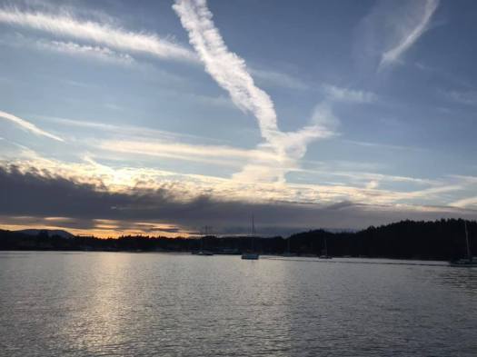 So here we are anchored in Ganges Harbor, Salt Spring Island, BC. The area is so beautiful. After work we went into town to check it out and provision. Water was a tad choppy so we all got a little wet. Have to remember to carry our giant sponge. The evening is peaceful and serene. There are meteors tonight!