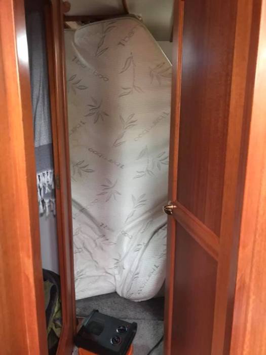 Because we left the top hatch cracked, salt water got on the bed while sailing to Monterey. 😱 After fresh water to dilute the salt out and 3 days of sun and a space heater it is finally dry! We’ll be keeping a very close eye on it for mold and smells. 🙃