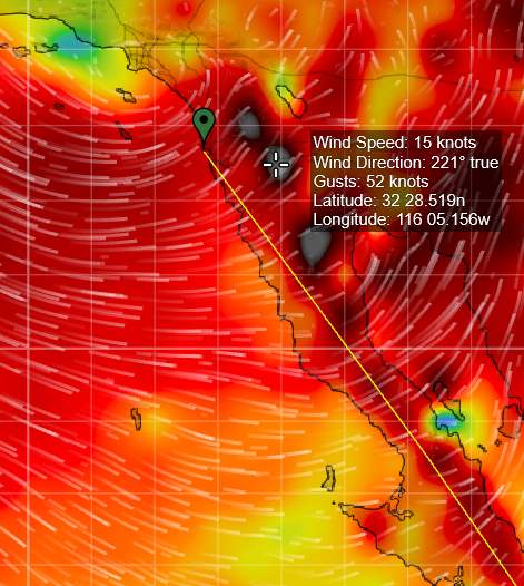We’re in Ensenada (green marker) waiting to move south. Guess we’re staying put for a while longer since this is Wednesday’s forecast.