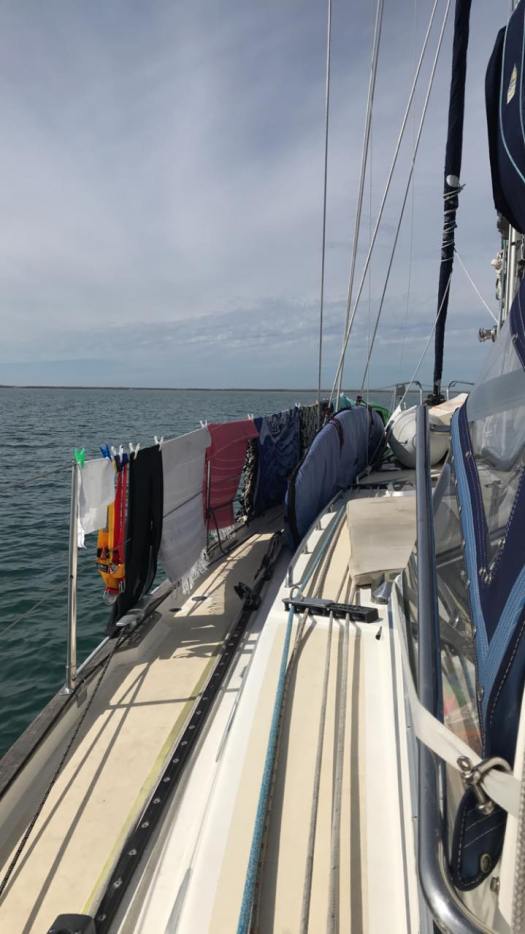Here we are, sitting in this lovely anchorage off Bahía San Quintin/Bahía Santa Maria. Anchored with our friends with this amazing, desolate landscape. Also, drying stuff 🤪