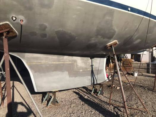 A peek into the future holds more sanding for us, then we finish the port side of both boats in another extravaganza.