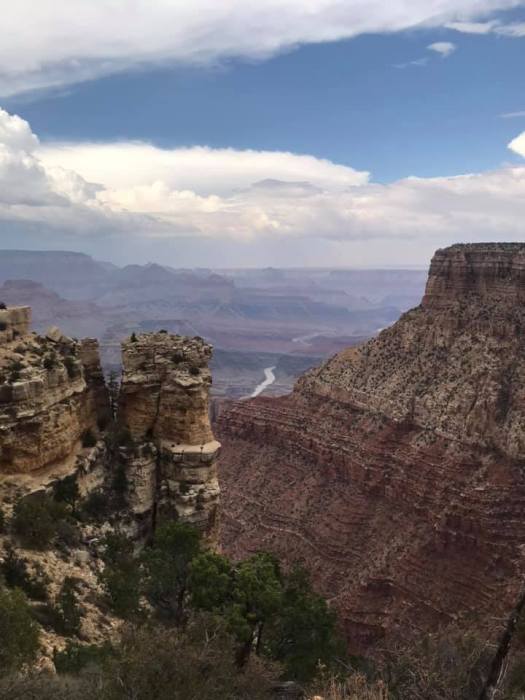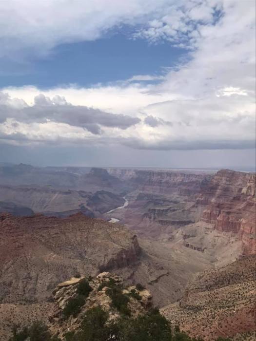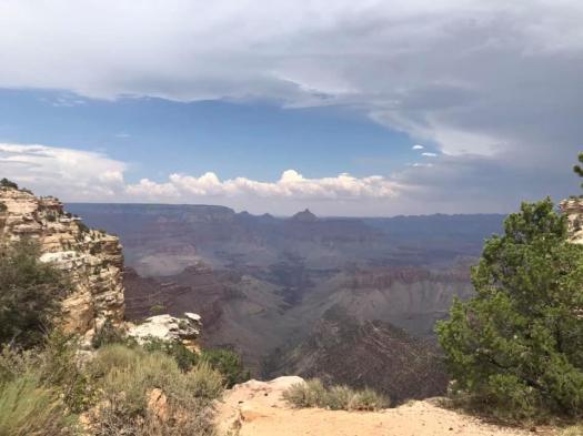 We went out this morning to hike part of the Bright Angel Trail. Then, came back to camp and fixed bacon and eggs. š„š³ Next a drive along Desert View Drive stopping at various points. Made it back just as the skies opened up and rain is pouring down, lightning and thunder. The thunder cracks are impressive to listen to. We have experienced more rain ā in the last two days than we have in the last almost 2 years. š±