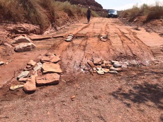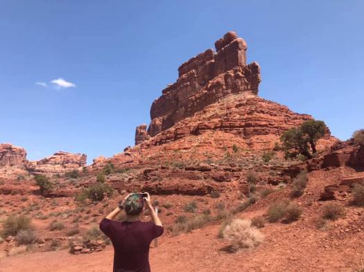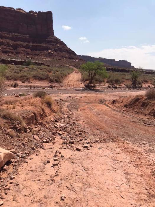 Then we headed to Valley of the Gods which is best done in dry weather, especially if you are in a minivan. We went through a few wet spots of sticky clay. To avoid getting stuck we industriously packed the deep ruts from other vehicles with flat rocks. Only spun a few times. Pulsito (yep, named the minivan) has a few badges of honor, mostly on the under carriage.