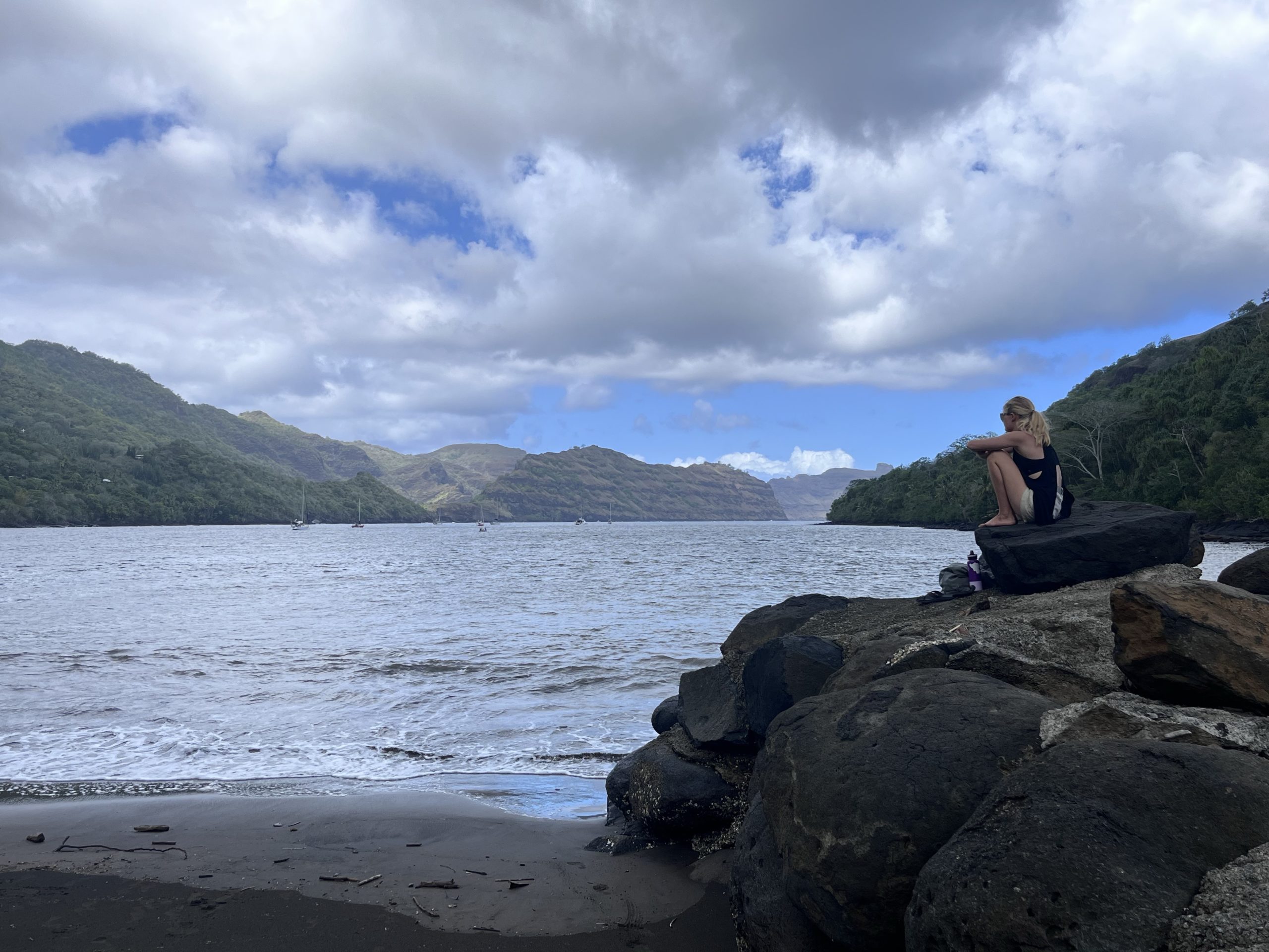 Next we anchored on the center lobe of Controller Bay off the village of Taipivai. Sometimes you can get your dinghy up the mouth of the river to the village. Other times it’s a beach landing. Our beach landing skills were very rusty. We managed to swamp the dinghy coming and going from the beach.