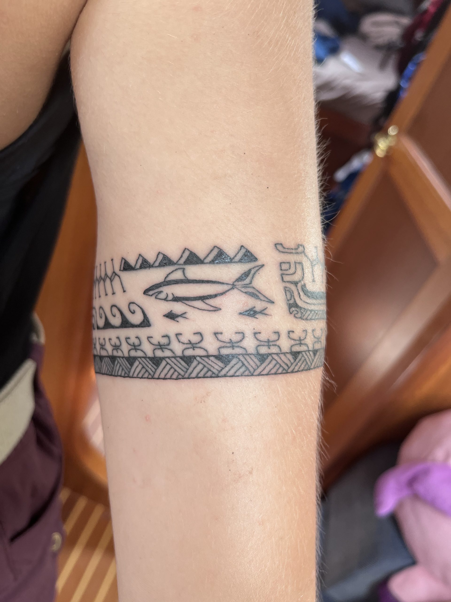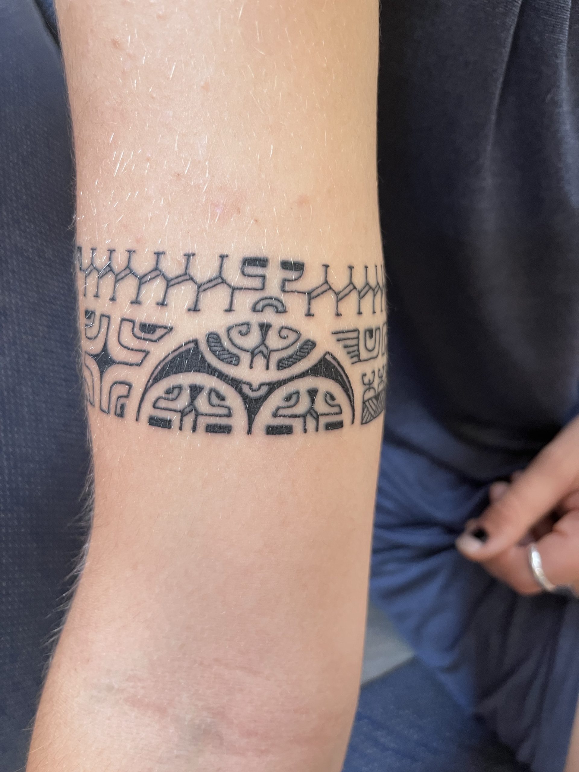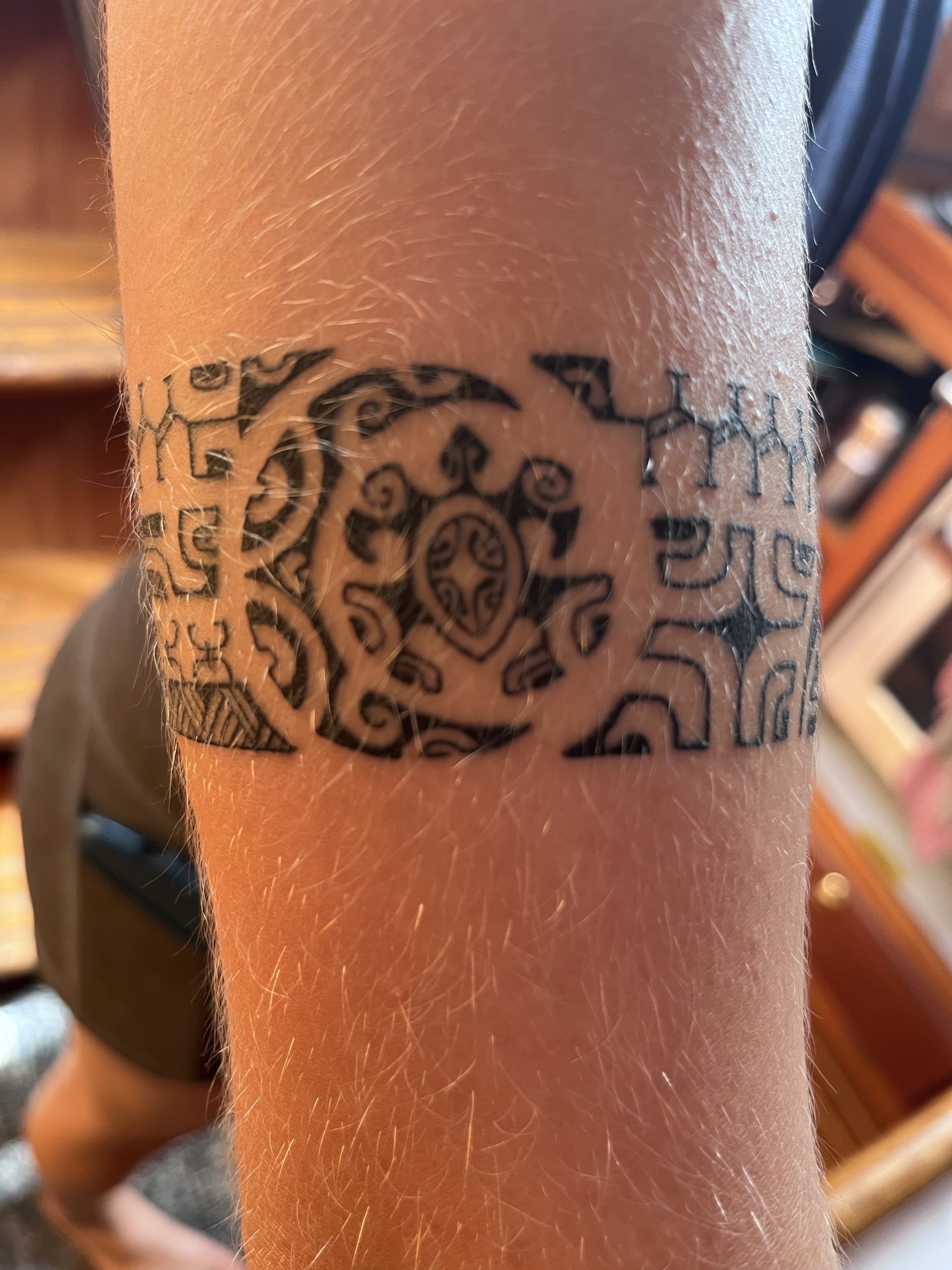 The Marquesans proudly and joyfully share their language and traditions with any who are interested. Each tattoo is a personal story of the individual wearing it; as unique as their life. Marquesan tattooing is amazing in its intricacies. A symbol’s meaning can alter subtly depending on its position on the body, location in the tattoo, and it’s relationship to other symbols. It is humbling to be able to wear their symbols and designs and bear the marks of our lives so far.