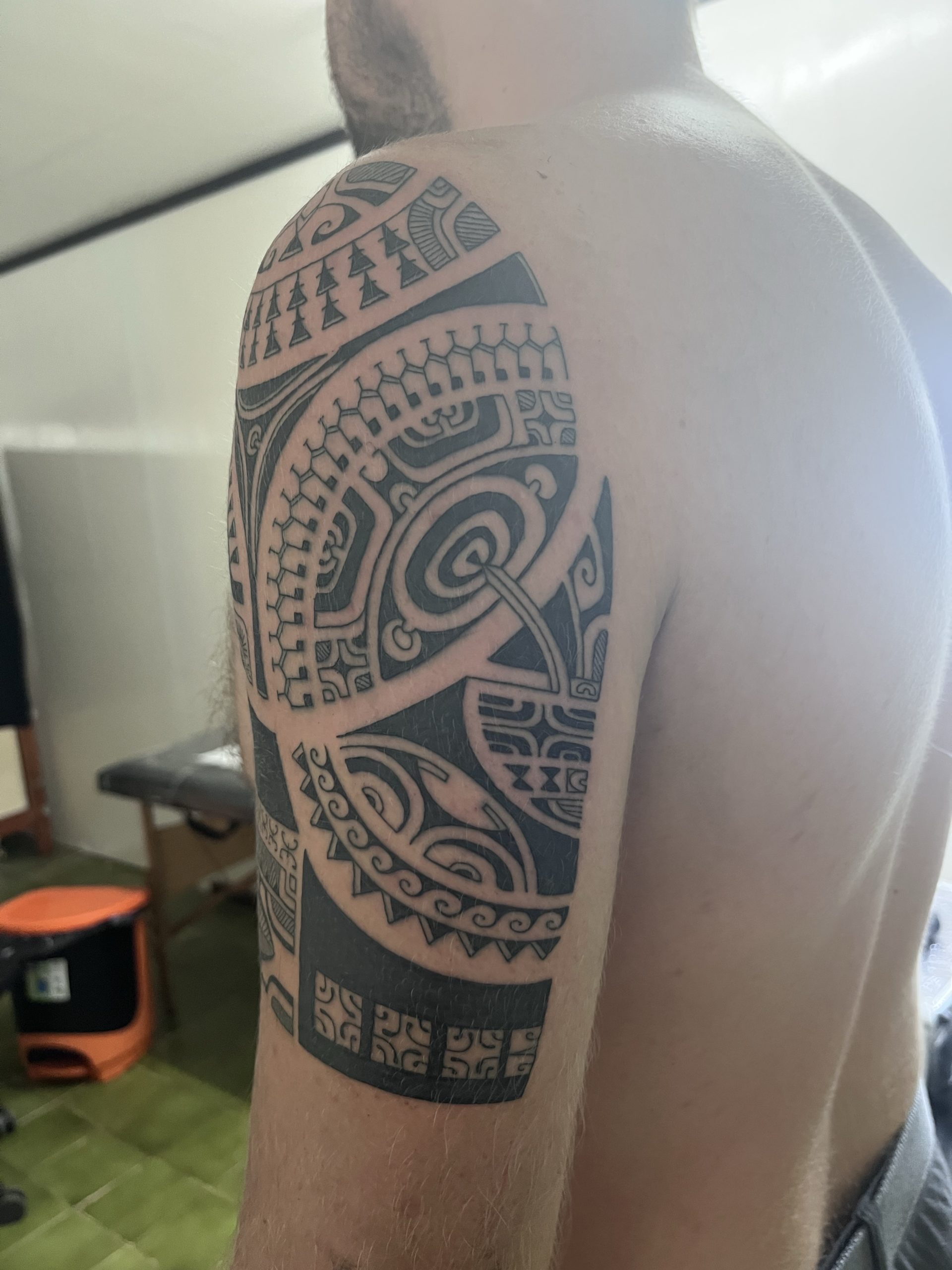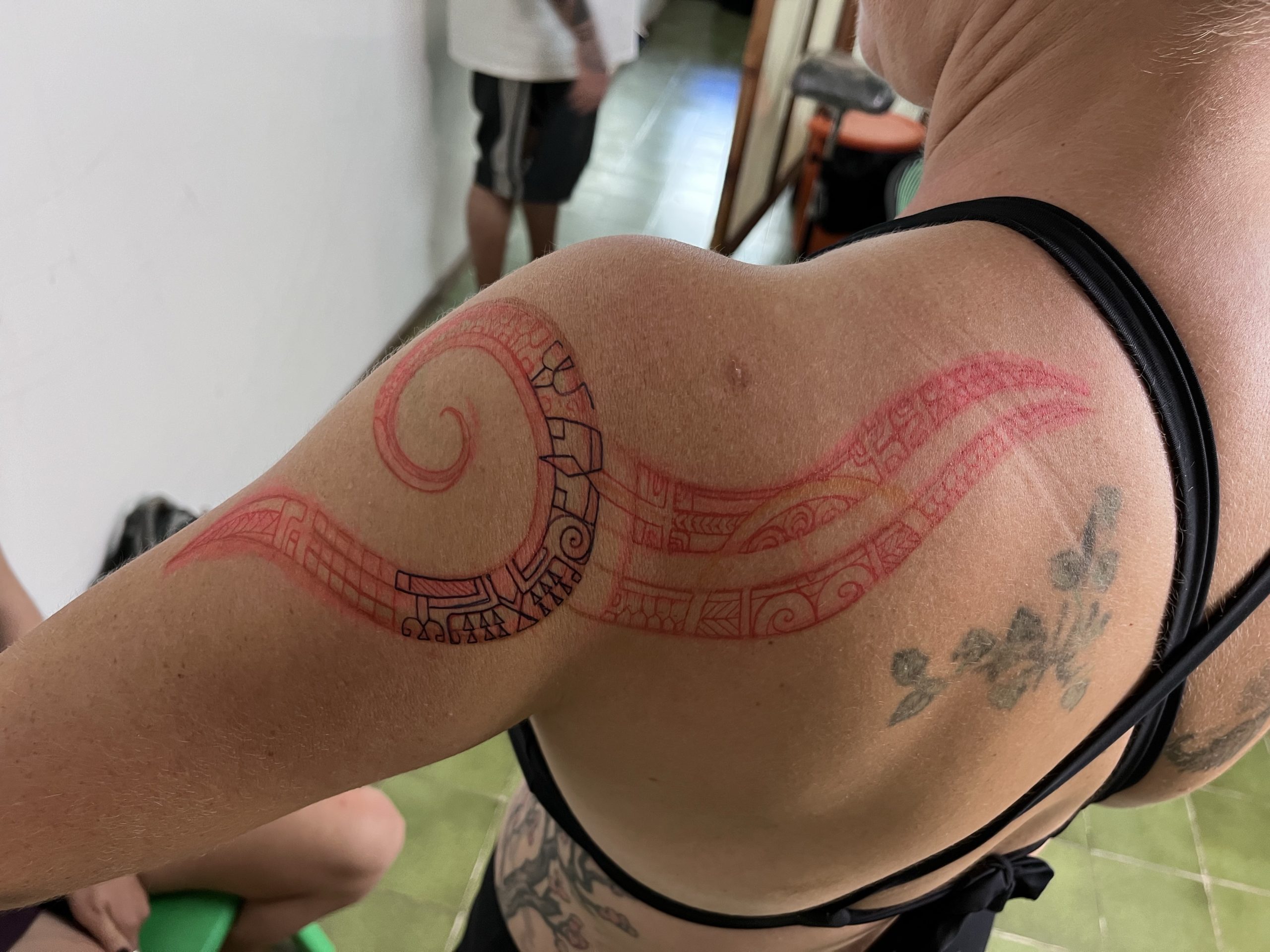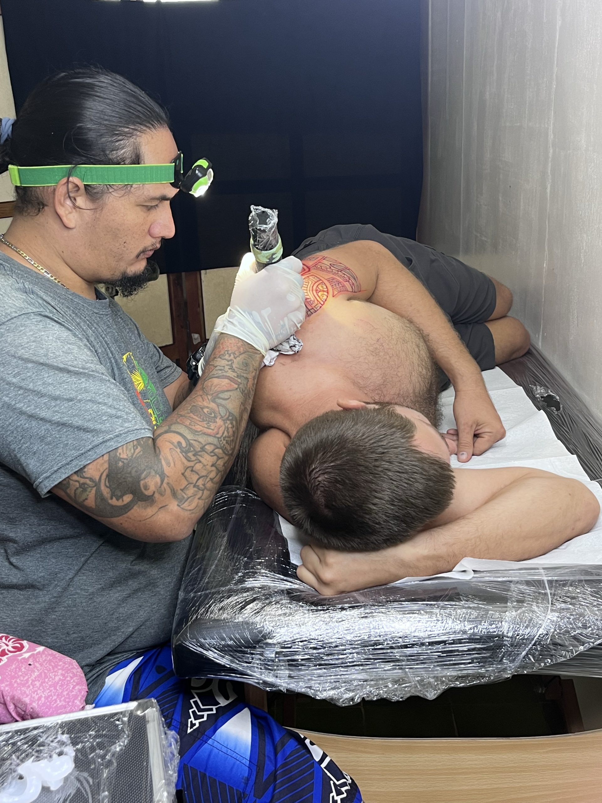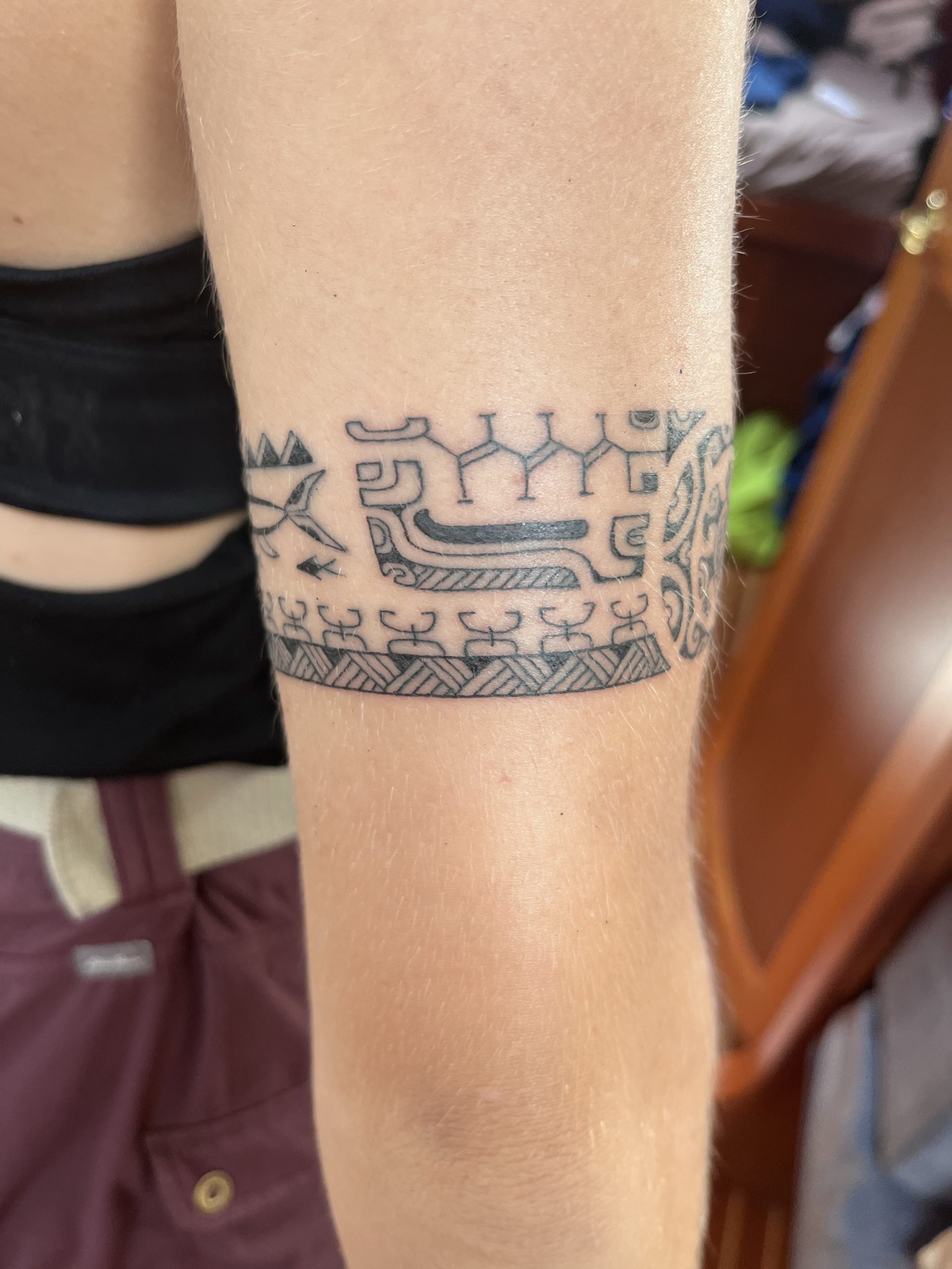 The Marquesans proudly and joyfully share their language and traditions with any who are interested. Each tattoo is a personal story of the individual wearing it; as unique as their life. Marquesan tattooing is amazing in its intricacies. A symbol’s meaning can alter subtly depending on its position on the body, location in the tattoo, and it’s relationship to other symbols. It is humbling to be able to wear their symbols and designs and bear the marks of our lives so far.