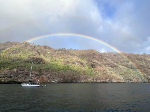 Pulsar finally has internet again and we are anchored on the north side of Hiva Oa, but shopping in Atuona (south side anchorage).