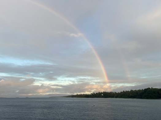 One of those magical mornings. I woke up to light rain, the kind you just want to go stand out in, a double rainbow, and a sunrise with plenty of color (camera couldn’t capture it). Good morning from Majuro.